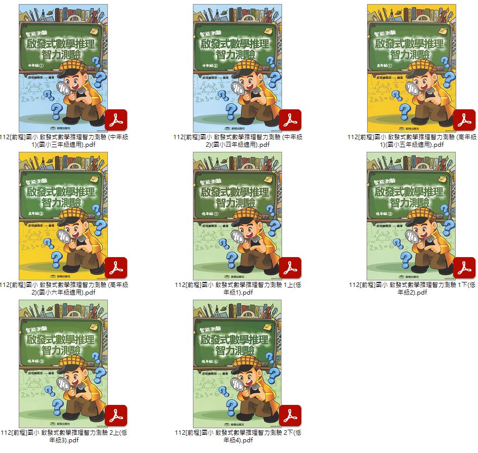 112年國小輔助教材 [前程]啟發式數學推理智力測驗 低、中、高年級 + 智能測驗[新編]IQ智力測驗 1-3年級 + 數學應用問題專輯 中、高年級 教材光碟