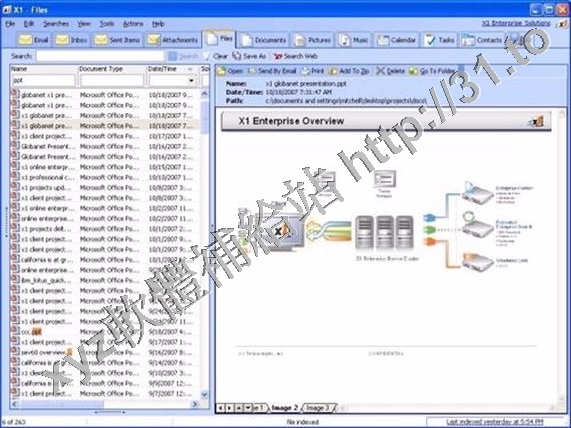 X1 可以搜索本地硬碟或網路硬碟上的郵件和附件檔,以及超過390種檔類型。軟體支援