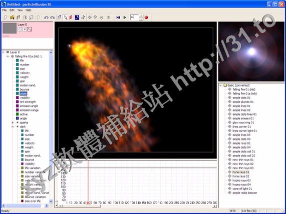 上千的粒子庫中的粒子類型也夠你使用的,包含一些火焰,植物,水,煙霧,LOGO,
