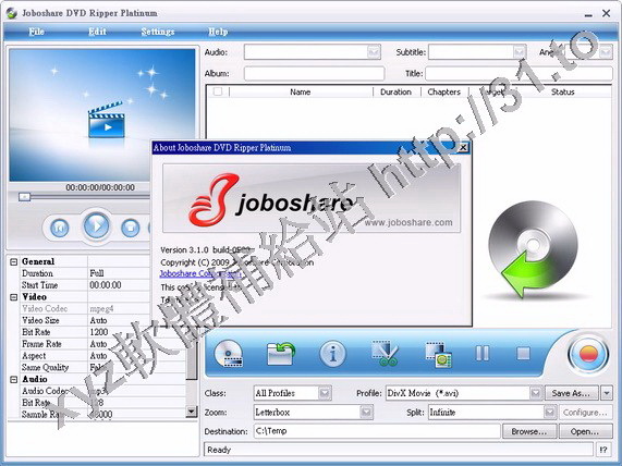• Joboshare DVD Ripper Platinum v3.3.1.0309 英文正式版(DVD視頻轉換軟體)